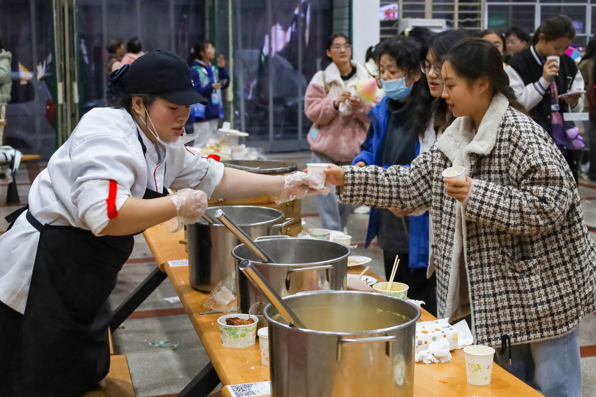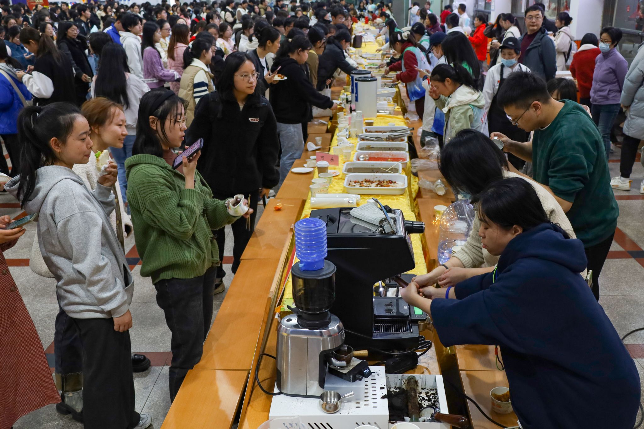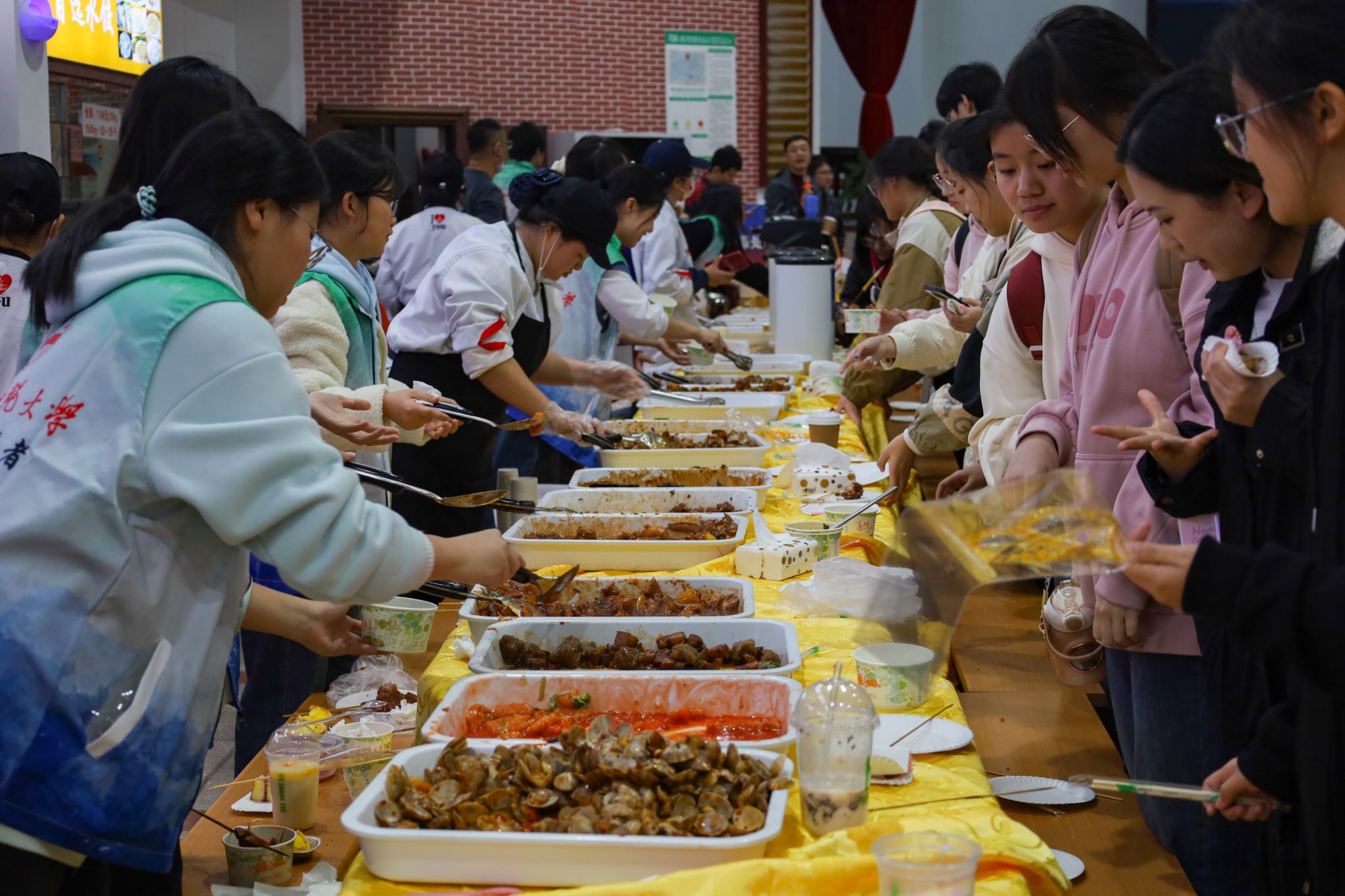 随着工作人员揭开锡纸,外酥里嫩的烤全羊成了全场的焦点。“太幸福了,第一次参加美食节就能够品尝到这么多中外美食,简直是员工党福音。”手里拿着烤全羊、刚咽下上一口蛋挞的中国语言文学类专业2023(6)班的吴佳佳笑着说。她坦言,中外美食节让员工有机会品尝到不同民族地区的特色美食,增长了见识,满足了员工因美食而产生的幸福感的同时也丰富了校园文化生活,进一步活跃校园文化氛围。