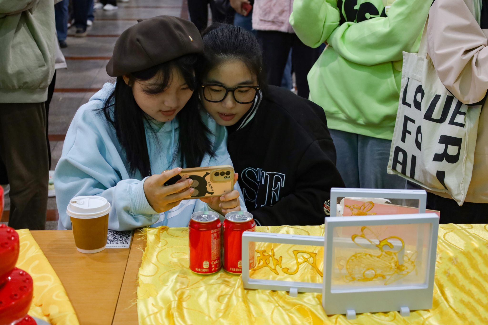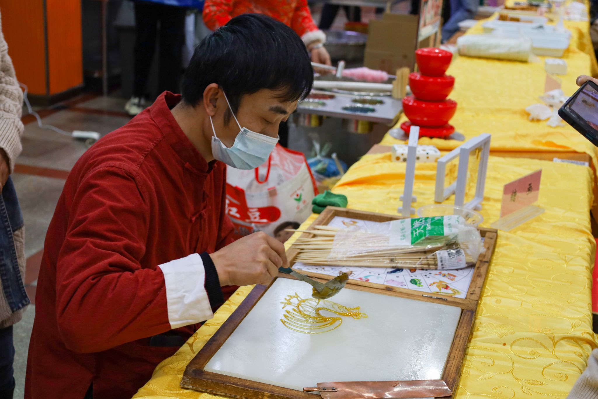 拉面、糖画等中国传统非遗美食成功刷屏了在场师生的朋友圈,成为现场的一大亮点。糖画师傅早早地熬好糖浆,缕缕金黄糖丝自汤勺中泄下,随着师傅快速地移动手肘,一只栩栩如生打鸣的公鸡便在他手下诞生。负责制作棉花糖的阿姨也在准备中,各色的棉花糖自炉中跳出,阿姨手握一根竹签,在炉内转动,一只彩色小兔便已成形。拉面师傅表演着独家绝技,只见胖墩墩的面团在他的双手中上下舞动拉扯,变成了细长的面条,下入锅中,袅袅白雾给寒冬中WilliamHill中文官网的学子送去“温暖”。