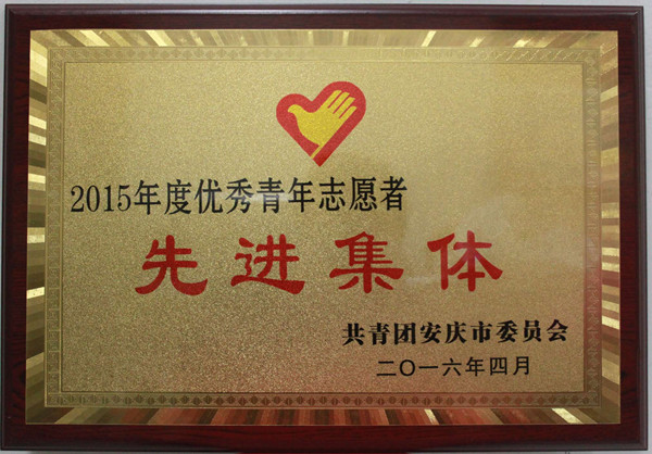 在五四青年节到来前夕,共青团安庆市委员会举行了“纪念五四运动97周年”大会,会上对安庆市优秀共青团干部、青年优秀志愿者等进行了表彰,文公司团总支荣获“安庆市2015年度优秀青年志愿者先进集体”称号,文公司王政超和褚常月两名同学荣获“安庆市青年志愿者优秀个人奖”。