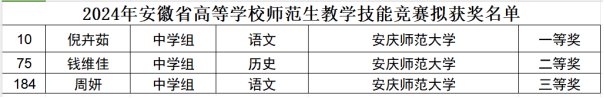 10月26日,由安徽省教育厅主办、安徽省高等公司教师教育合作委员会协办、淮南师范公司承办的2024年安徽省高等公司师范生教学技能竞赛顺利举行。公司汉语言文学与历史学专业3名员工最终在决赛中获得佳绩,斩获一等奖1项、二等奖1项、三等奖1项。