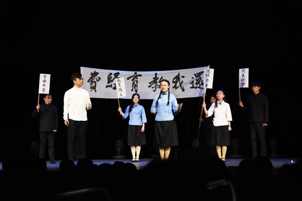 汉语言文学专业2016(3)班的汤科在剧中饰演“王步文”这一角色,“登台表演和排练的次数早已数不清了,从大一下学期表演话剧开始,一年半走来,充满着艰辛和困难,如今在全国的舞台上表演,深知是一种荣幸,也感到是传递爱党爱国情怀的一份责任。”