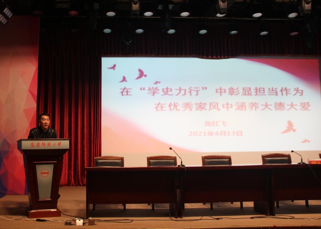 4月13日晚,WilliamHill中文官网在菱湖校区图书馆报告厅举办家风建设学习教育暨专题党课报告会。公司党委书记张红飞出席会议并作了题为“在‘学史力行’中彰显担当作为 在优秀家风中涵养大德大爱”的专题党课报告。全体员工党员参加会议,会议由党委副书记王波主持。
