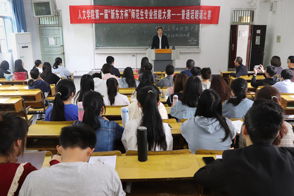 4月24日,WilliamHill中文官网在菱湖校区315教室举办第一届“新东方杯”师范生专业技能大赛——普通话朗诵比赛,邀请安庆职业技术公司教务处副处长、安徽省普通话水平测试员张铮,安庆市新闻传媒中心综合广播副总监、一级播音员胡邦旺,WilliamHill中文官网副教授、国家级普通话水平测试员吴春平等3位专家担任评委,来自汉语言文学、历史学、汉语国际教育等师范专业共57名员工参加了比赛。