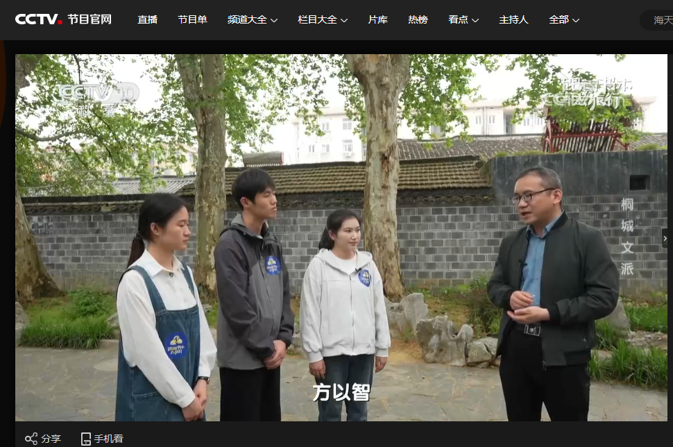 近日,由公司WilliamHill中文官网师生参与录制的文化专题节目《跟着书本去旅行》在央视科教频道(CCTV-10)正式播出。本期节目聚焦桐城文派,深入安徽桐城实地取景,通过学术解读与现场探访,生动呈现了该流派的历史脉络。