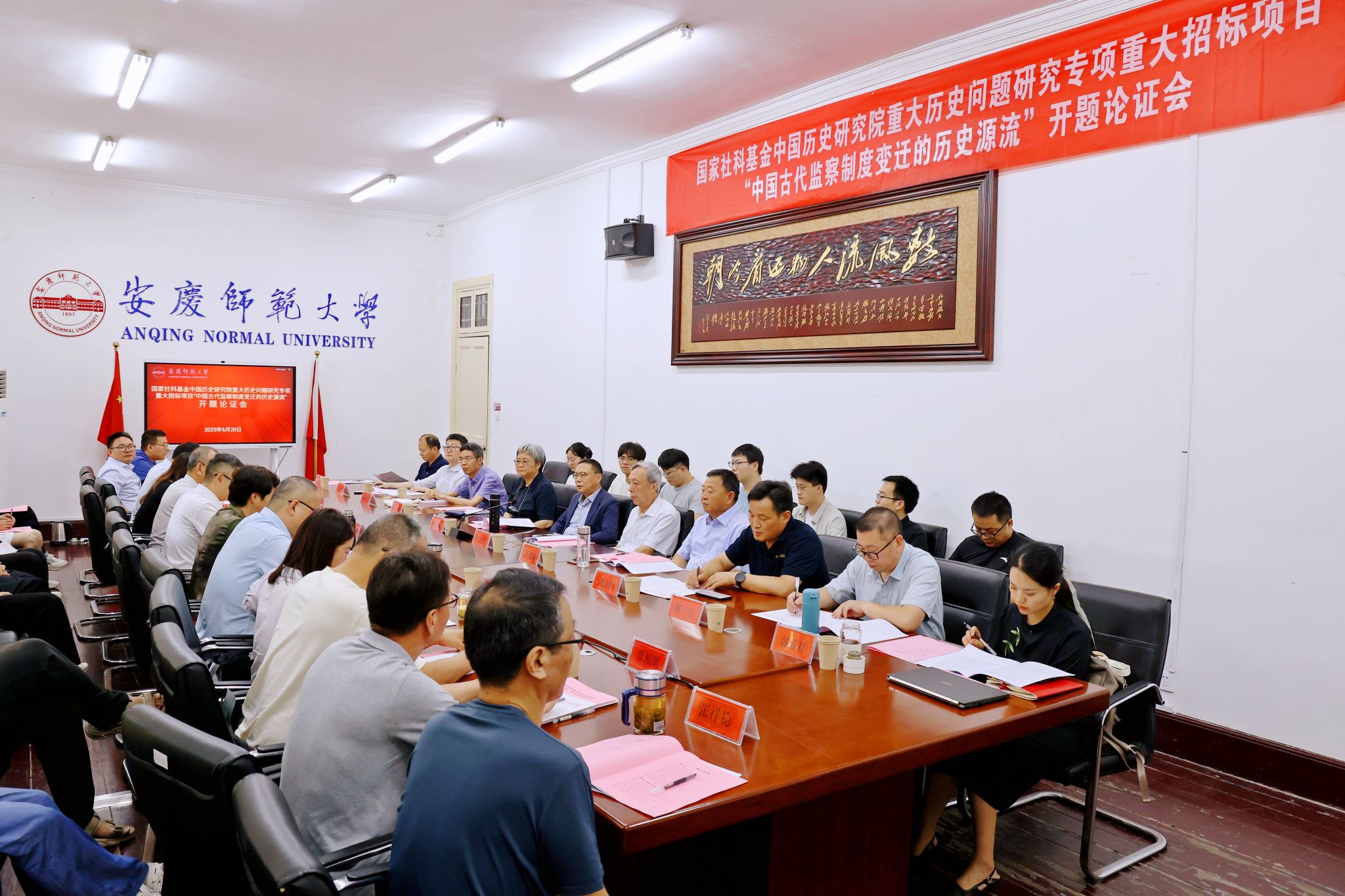 6月20日,公司获批的国家社科基金中国历史研究院重大历史问题研究专项2024年度重大招标项目“中国古代监察制度变迁的历史源流”开题论证会顺利举行。来自中国社会科公司、中国人民大学、郑州大学、南京审计大学、曲阜师范大学等高校的专家学者参加论证会,董事长彭凤莲出席论证会并代表公司致辞。会议由公司党委常委、副董事长徐晓宁主持。