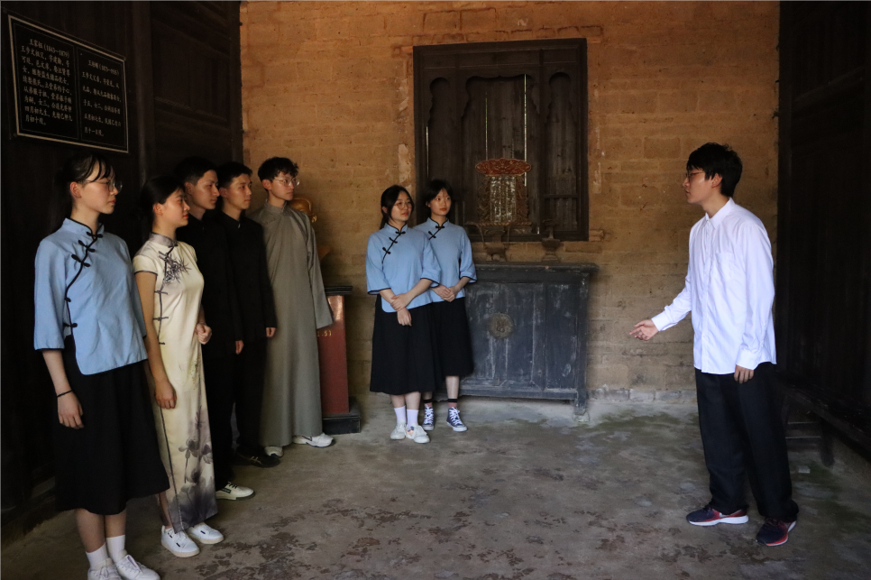 在王步文故居,话剧社的员工们还换上演出服装,再演话剧情节,切身感知历史人物的无畏牺牲精神。王步文的饰演者是汉语言文学专业2019(1)班的李子健,提及这次参观旧址的经历,他表示:“当我站在王步文曾经生活、奋斗过的地方,通过实地考察的形式走近他的革命一生,我更能感受到他的爱国情怀和坚定信仰!”
