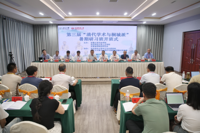 7月12日,由威廉希尔WilliamHill、安徽大学与安徽省桐城派研究会联合主办的第三届“清代学术与桐城派”暑期研习班开班式在安庆市举行。中国近代文学学会会长、河南大学文公司教授、安徽大学历史公司特聘教授关爱和主持开班式。中国社会科公司学部委员、文学研究所原所长刘跃进研究员,公司党委常委、副董事长徐晓宁,安徽省桐城派研究会会长、桐城师范高等专科公司党委书记王子龙,安徽大学历史公司经理魏国锋教授分别致辞。
