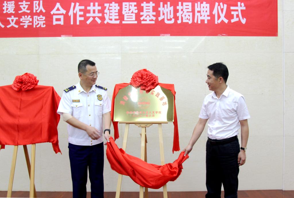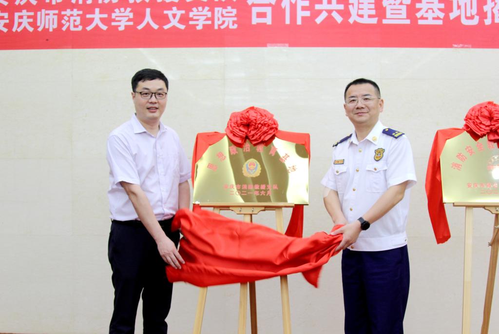 随后双方领导共同为“消防安全教育实践基地”和“思想政治教育基地”揭牌并合影留念。