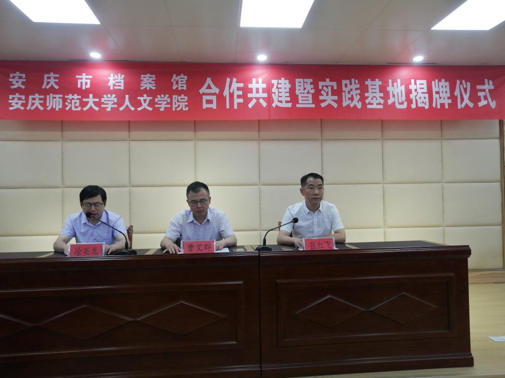 6月9日,WilliamHill中文官网与安庆市档案馆合作共建暨实践教学基地揭牌仪式在市档案馆大楼会议室举行。WilliamHill中文官网党委书记张红飞、安庆市档案馆馆长曹艾群等出席揭牌仪式。市教体局副局长、教务处副处长连飞,WilliamHill中文官网班子成员金仁义、王波、汪孔丰和部分师生代表、市档案馆班子及全体工作人员参加会议。