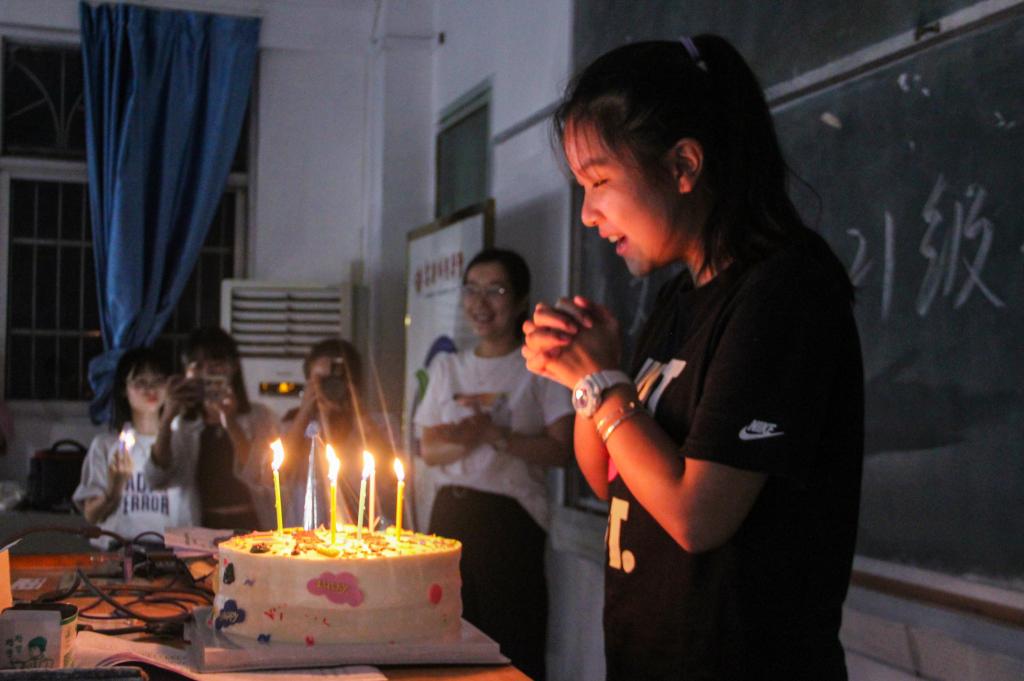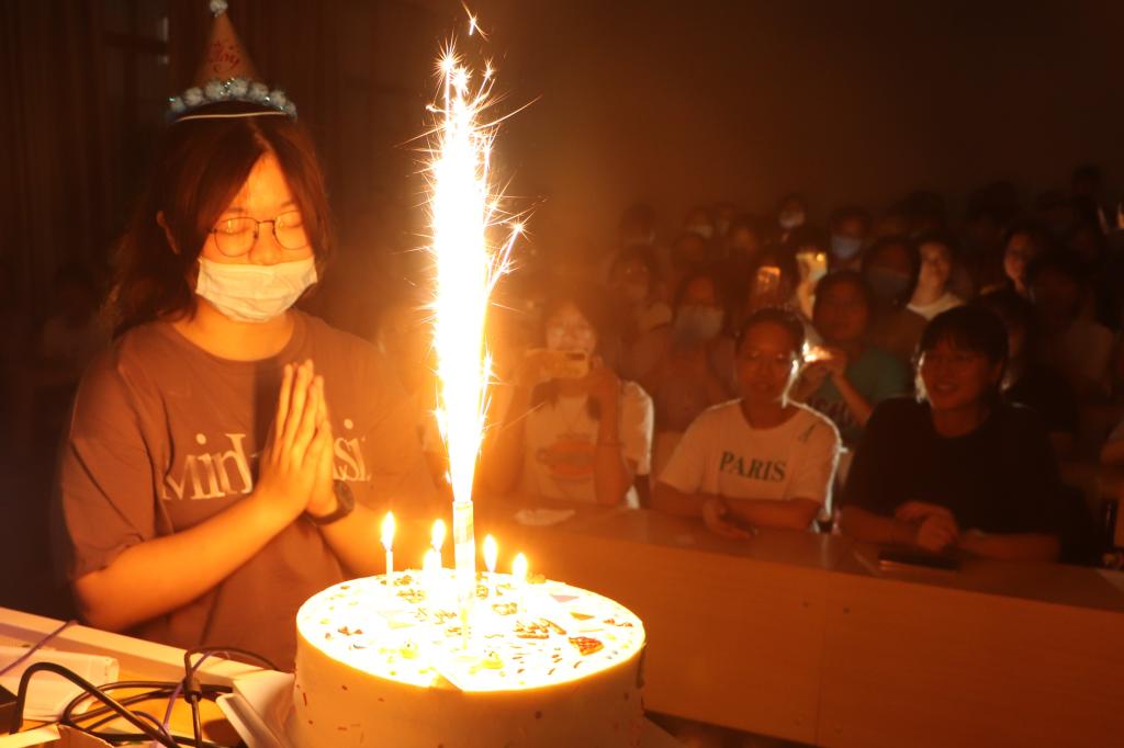 “看到学姐捧着点了蜡烛的蛋糕踏入教室的时候,我真的惊喜到了!”中国语言文学类2021(5)班的王青很是激动,“我完全没有想到公司会在开学这天给我过十八岁生日,除了父母,我还收到了来自老师、学姐和46名新同学的祝福,这让我的‘成人礼’仪式感满满!”
