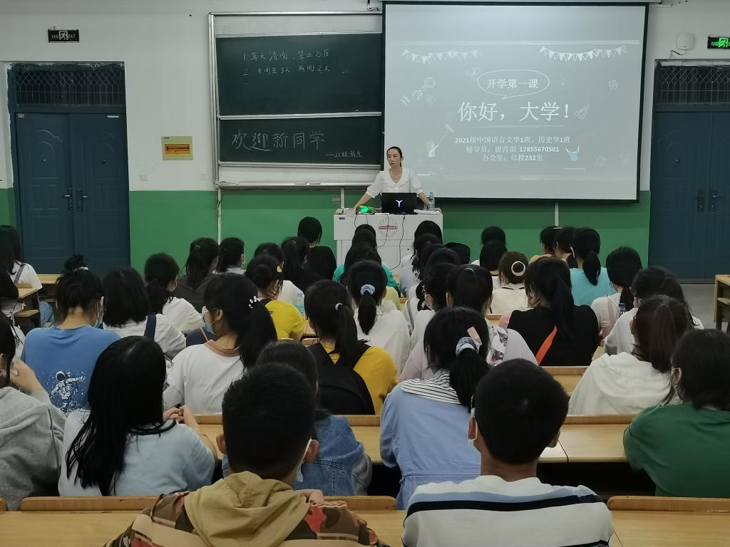 同时,各位辅导员老师也重点强调了校规校纪、人际关系、疫情防控等内容,对新生们提出了自己的期待和要求,也帮助他们展望未来的美好生活“大学的第一次班会对我们来说是有着不一样的意义的,通过这次班会,我对于自己的老员工涯已经有了最基础的认识。”中国语言文学类2021(4)班的盛亮在班会结束后这样说。