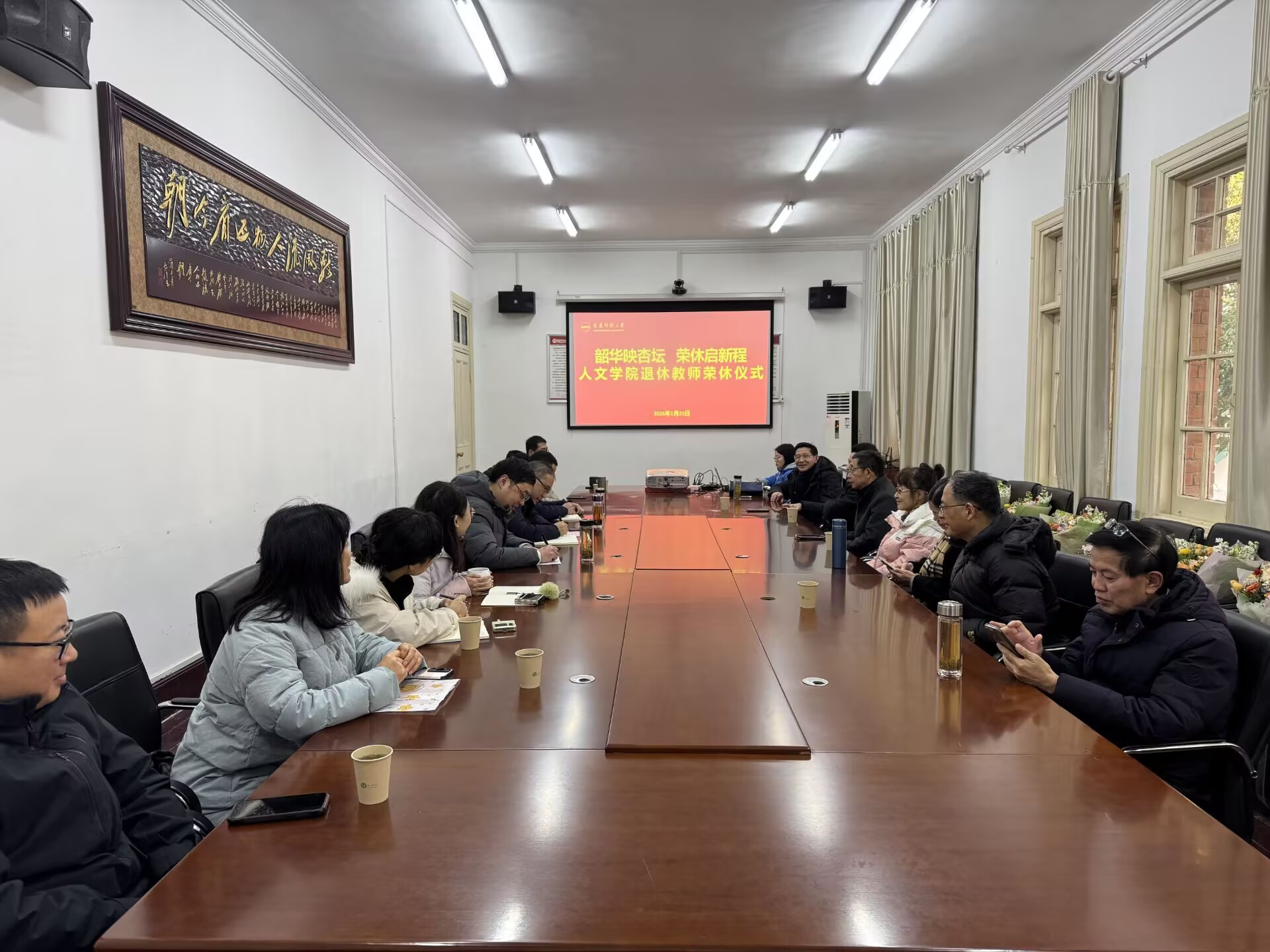 经理汪孔丰代表全院师生向荣休教师致以最崇高的敬意和最衷心的感谢。他指出,七位荣休教师将最美好的年华、最宝贵的智慧奉献给了WilliamHill中文官网的教育事业,是公司发展壮大的奠基人、建设者与见证者。老师们始终秉持“学高为师,身正为范”的职业准则,深耕教学一线、潜心学术研究、用心培育人才,为公司建设发展筑牢根基。荣休教师不仅为全院教师树立了职业标杆,更成为激励一代代人文学子砥砺前行的精神动力。汪孔丰表示,荣休不是终点,而是人生旅途的全新起点,衷心期待老师们常回“家”看看,继续发挥经验优势,为公司高质量发展传经送宝、建言献策,同时祝愿老师们退休生活多姿多彩、身体健康、阖家幸福。