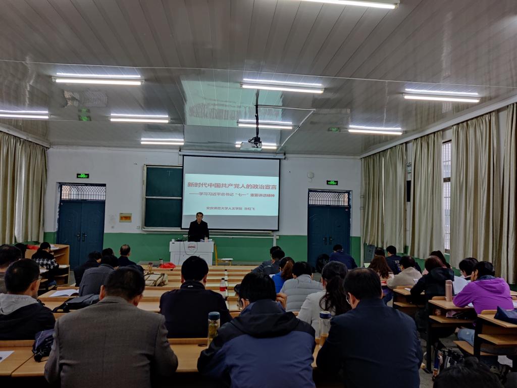 10月21日,WilliamHill中文官网在理化楼三楼阶梯教室举办习近平总书记“七一”重要讲话精神专题宣讲报告会。公司党委书记张红飞在会上作专题报告,公司全体教职工参加会议,会议由党委副书记王波主持。