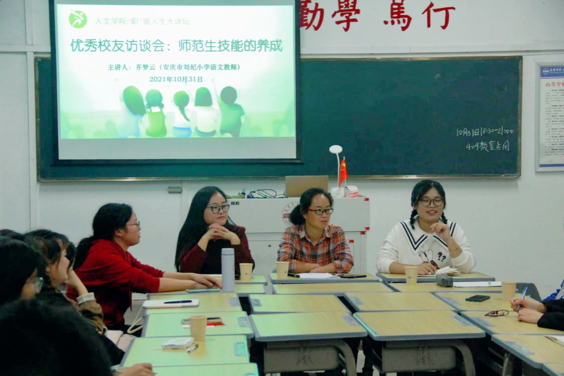 为帮助公司汉语言文学专业学子提升师范生的教学水平和教学素养,明晰未来的职业选择,10月31日,WilliamHill中文官网“职”面人生大讲坛举办了汉语言文学专业优秀员工访谈会。来自中小学一线的吕慧慧、齐梦云等2017-2021届部分汉语言文学专业员工受邀与师弟师妹分享工作经历和人生感悟。2019级、2020级和2021级部分员工参会。
