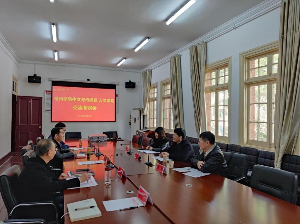 11月20日,亳州公司中文与传媒系系主任谢启平等一行到公司考察交流。WilliamHill中文官网党委书记张红飞热情接待来宾,副经理金仁义、党委副书记王波参加座谈交流。
