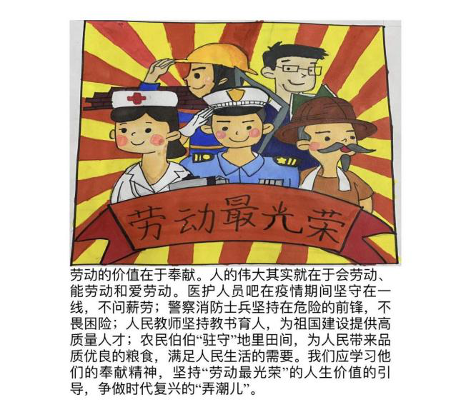 “劳动,是人生的第一堂课。”寒假“手绘劳动风貌,朗诵劳动诗篇”活动自开展以来,反响热烈。参与活动的同学认真准备并用图画贺卡、剪纸春联、劳动视频等形式集中展示了青年老员工热爱劳动、致敬劳动者的精神风貌。中国语言文学类2021级2班邢青涛的手绘作品《劳动最光荣》勾画出了劳动者的典型形象。邢青涛谈到:“通过参加此次活动收获了很多,不仅提高了我的创造能力,更能培养我热爱劳动、尊崇劳动的意识,让我对劳动精神有了更深刻的理解。”中国语言文学专业2021级3班的张哲洁还积极参加了“今日我当家”主题劳动实践活动,早起扫地、烧饭洗碗、精心准备年夜饭。