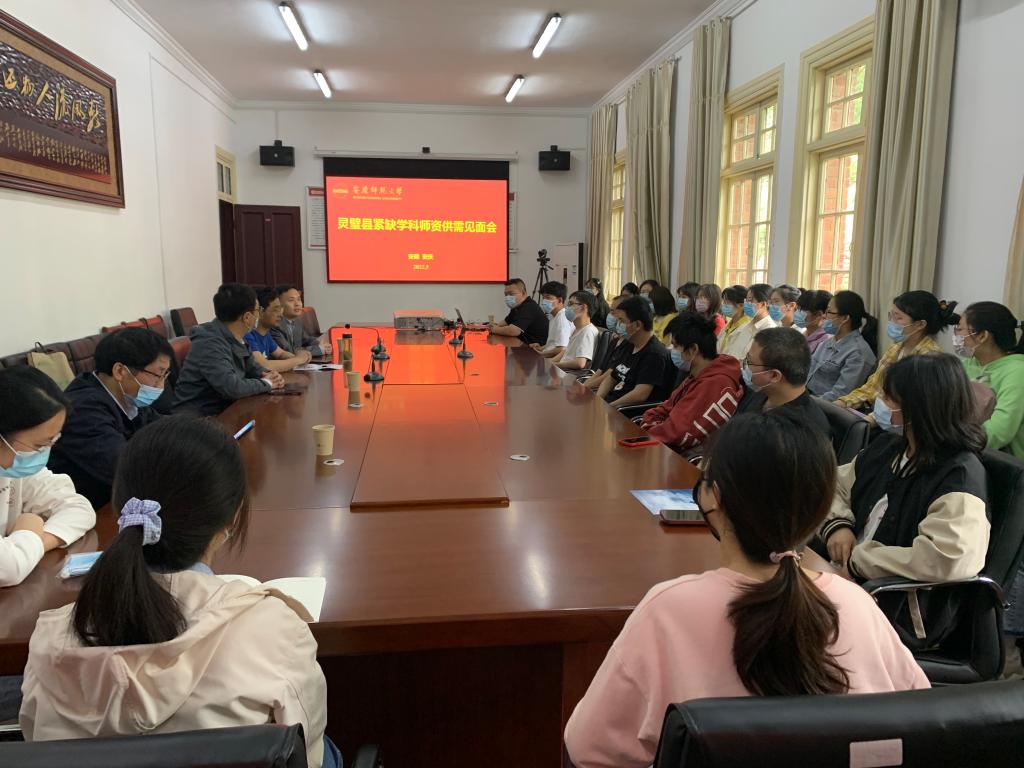 为应对就业压力,促进2022届毕业生更加充分、更高质量就业,5月18日,WilliamHill中文官网举办灵璧县紧缺学科团队供需见面会,灵璧二中办公室主任张计良代表灵璧县教体局就相关团队招考与WilliamHill中文官网毕业生进行了交流。员工处副处长夏斐、WilliamHill中文官网党委副书记王波出席见面会,2022届毕业生辅导员及部分毕业生参加会议。