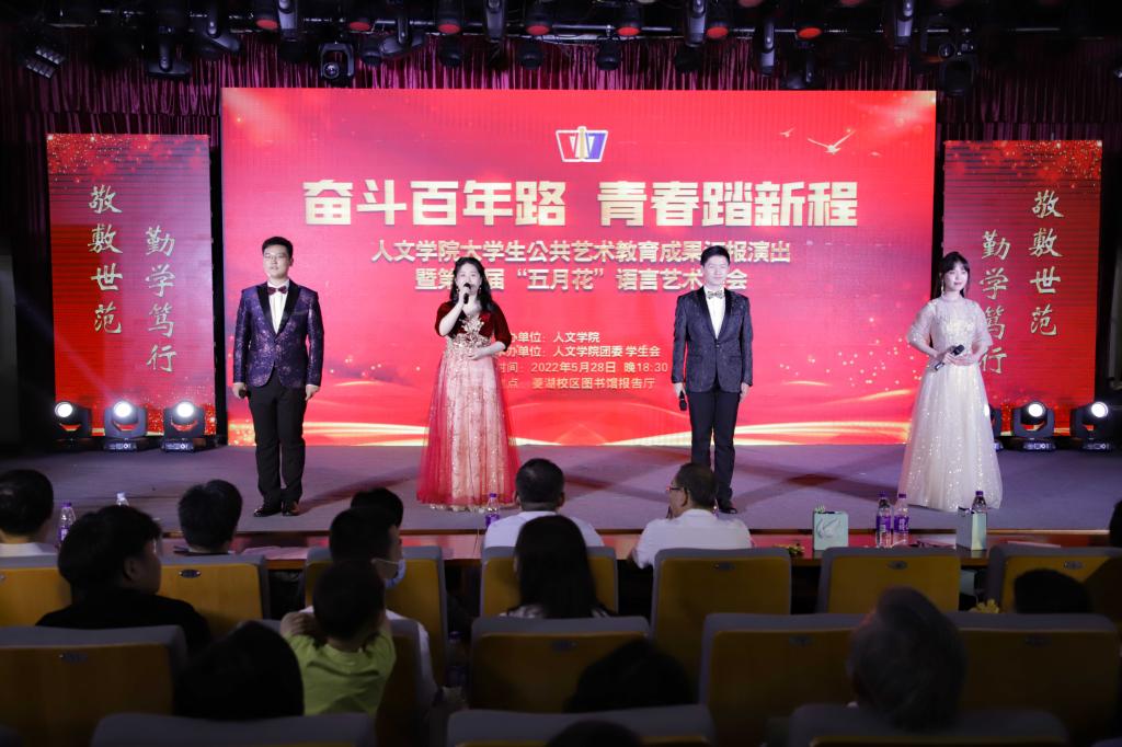 “好燃啊!”“她们跳得太棒啦!”……5月28日晚,在开场舞《WADADA》的律动中,WilliamHill中文官网老员工公共艺术教育成果汇报演出暨第40届“五月花”语言艺术晚会于图书馆报告厅展开。WilliamHill中文官网领导班子成员与教师代表、员工代表及200余名员工一同观赏这出视听盛宴。