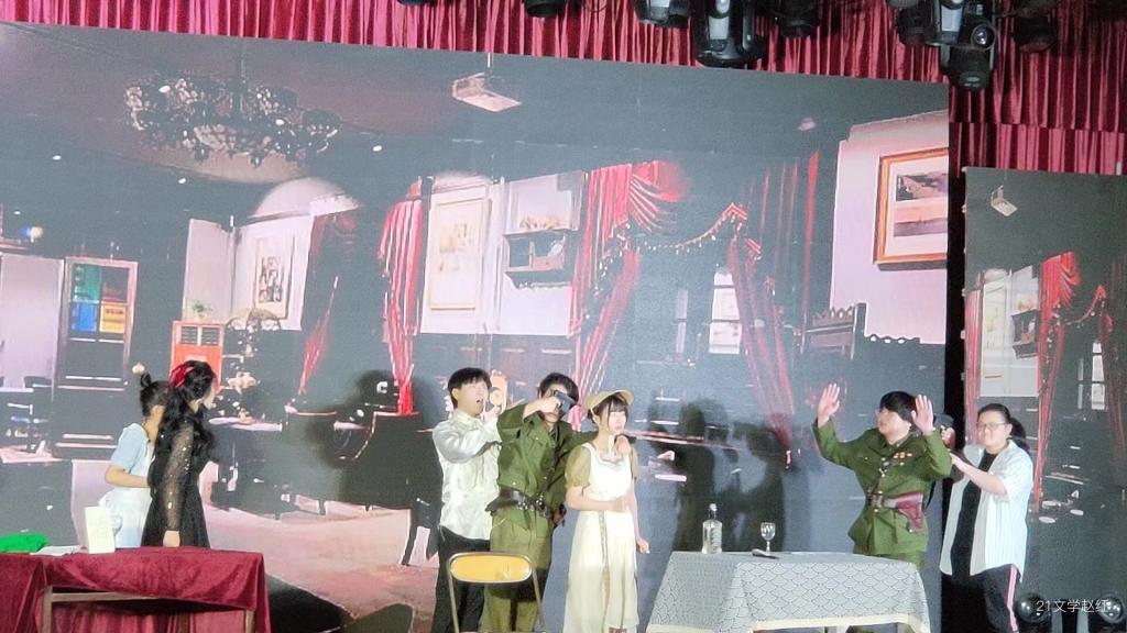 一场近四十分钟的话剧表演,是所有的话剧社成员经过无数次排演换来的结果。话剧社演员、汉语言文学专业2020(3)班的李优介绍,此次演出早在寒假期间便开始筹备,尽管遇到了演员空缺、剧本难写等困难,但好在话剧社全员齐心协力、不轻言放弃,大家通过线上线下多次商讨,挑选合适的演员,打磨最终的剧本,最终成功塑造了“陈望道”这一先驱者的形象。