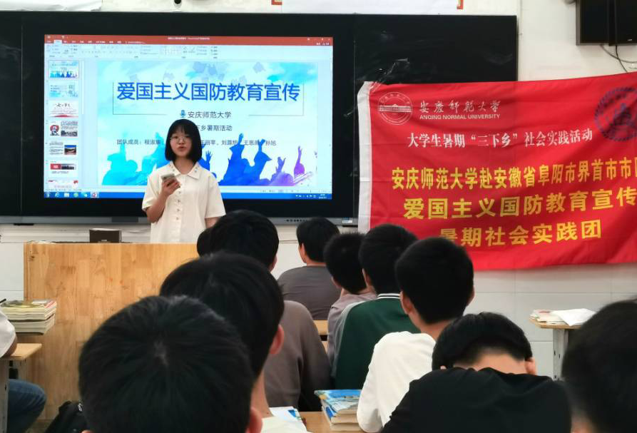 集团是开展全民国防教育的重要阵地。7月7日,调研实践团来到界首中学开展爱国主义教育和国防教育宣讲。宣讲当日恰逢“七七事变”85周年,队员带领中员工们重温85年前的悲痛硝烟,追悼英勇顽强的爱国忠烈,共同宣誓“勿忘国耻,警钟长鸣”,由此强调国防事业建设和国防教育对于国家发展和人民幸福的重要作用。通过对比叙利亚等国家与中国国防事业的发展,实践团成员呼吁青年学子主动掌握科学文化知识,打造过硬品格,不断增强国防观念,积极参与国防建设。