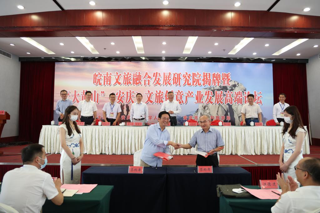 为贯彻落实省委、省政府关于建设“大黄山”国际休闲旅游目的地和推进十大新兴产业高质量发展的重要决策部署,搭建“政校企”三方合作平台,提升高校服务地方经济社会发展水平,推动文化旅游业高质量发展,9月29日,威廉希尔WilliamHill皖南文旅融合发展研究院揭牌暨“大黄山”(安庆)文旅创意产业发展高端论坛在皖源国际大酒成功举办。