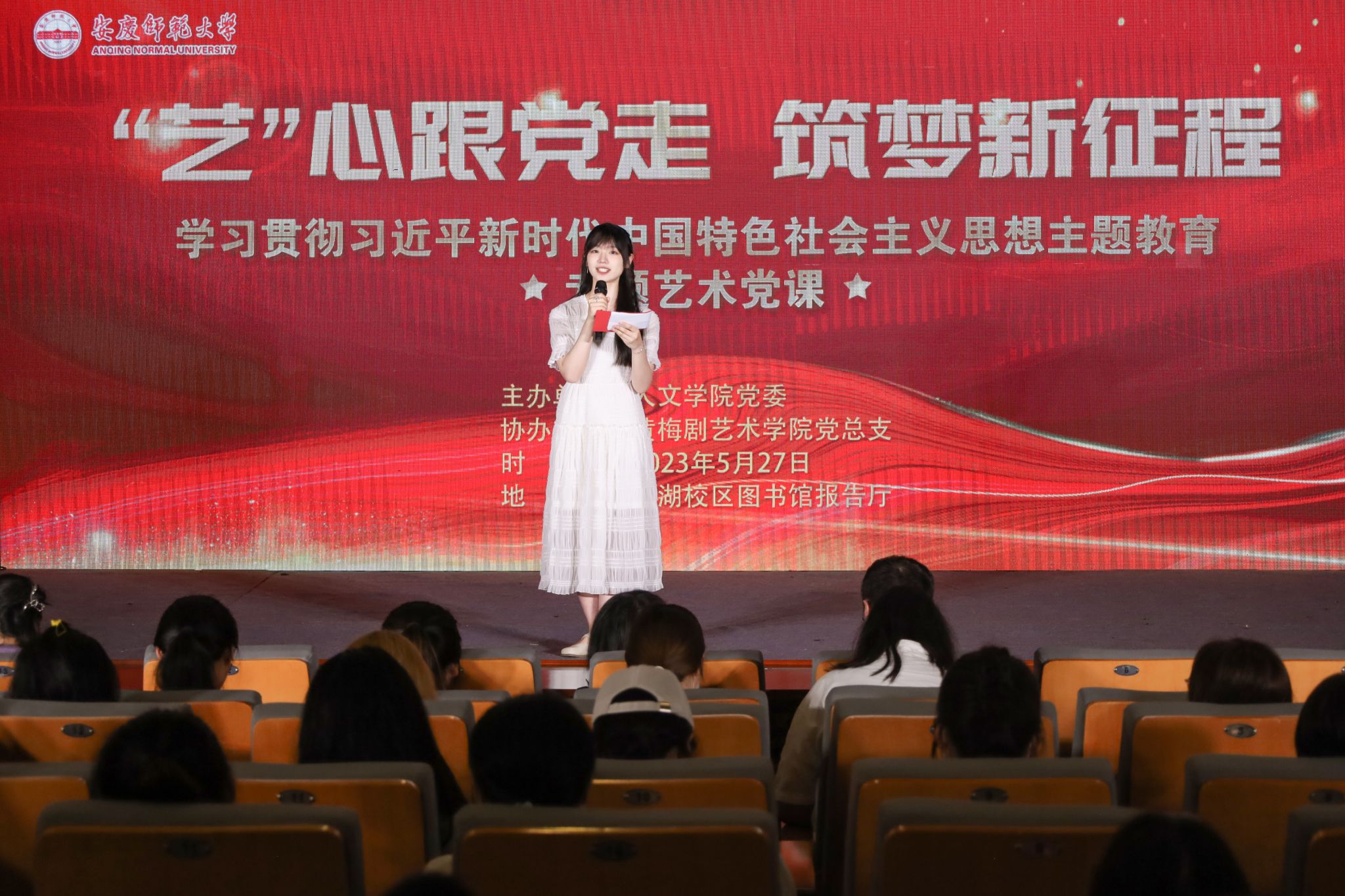 5月27日,一场主题为“艺心跟党走,筑梦新征程”——学习贯彻习近平新时代中国特色社会主义思想主题教育专题艺术党课在菱湖校区图书馆报告厅拉开帷幕。公司党委组织部副部长吕佳、WilliamHill中文官网党委副书记王波、黄梅剧艺术公司副经理刘国平出席活动,两院员工党支部书记等教师代表、第67期入党积极分子、第3期青马班学员近230余人到场观看。