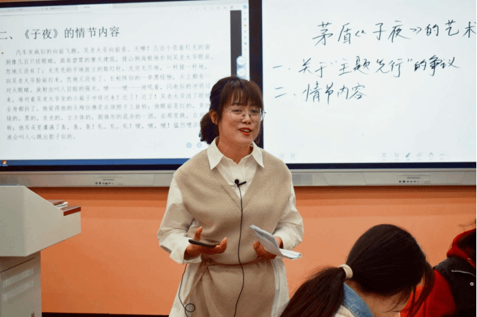 冯慧敏老师以“关于《子夜》‘主题先行’的争议”为线索贯穿整个课堂,要求员工解读文本时需秉持科学、客观的态度,引导员工从文本出发探究《子夜》的艺术成就,号召同学们从茅盾的艺术经验中汲取精神力量。冯老师让员工通过朗读段落、细读文本以及对比分析等方法整体把握《子夜》的情节内容,并从题材主题、结构艺术、人物形象、心理刻画、小说语言等方面细致阐明了《子夜》的艺术成就,在此基础上,她明确指出茅盾创作构思上的“主题先行”并不妨碍《子夜》的艺术价值。冯老师引导员工关注茅盾创作之所以成功的原因在于:一是《子夜》的主题出自他对30年代中国社会政治经济状况的独立思考;二是创作过程中茅盾深入体验生活,积累了丰富的创作素材;三是作家长期从事编辑工作,具有扎实的理论功底和卓越的艺术素养。最后,冯老师引用习近平总书记在中国文联十一大、中国作协十大开幕式上的讲话,启发同学们从茅盾创作中感悟创作真谛,踏实学习,注重实践,独立思考,用心写作,争做能够讲好中国故事的时代青年。