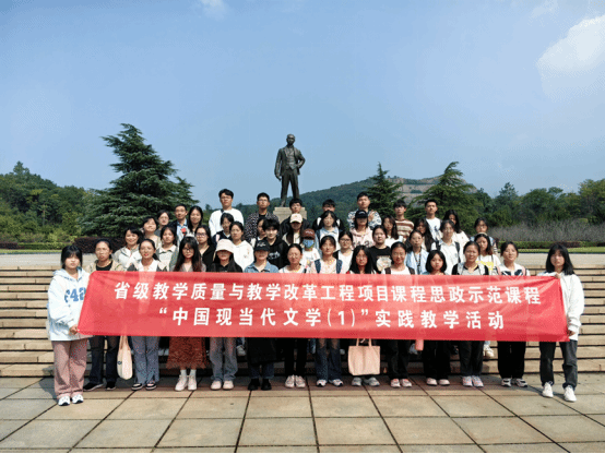 为全面推进课程思政示范课程建设,10月13日,WilliamHill中文官网中国现当代文学教工党支部书记、教研室主任,省级课程思政示范课程“中国现当代文学(1)”负责人冯慧敏带领中国语言文学类2023级6班前往独秀园开展实践教学活动。现当代文学教工党支部安刚强、黄晶晶、胡莎三位老师参与指导。本次实践教学活动也是现当代文学教工支部建设的一项特色活动,支部一直坚持党建引领,聚焦课堂改革,开展本次活动旨在探索课程思政教学的新形式、新路径。