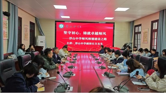 上午十点,在公司报告厅,浮山中学副董事长方友生为师生们带来了一场精彩的师德讲座。这位从教多年的教育工作者,将自己毕生的经验娓娓道来,“师风师德,是教育之魂,关乎员工成长、公司发展乃至整个教育事业的兴衰”,以此告诉我们师风师德的重要性。 接着他分别从“百年传承”、“制度保障”、“文化滋养”、“实践成果”等四个方面来传授自己的经验,令同学们受益匪浅。讲座结束后,同学们争相提问,现场互动尤为热烈。